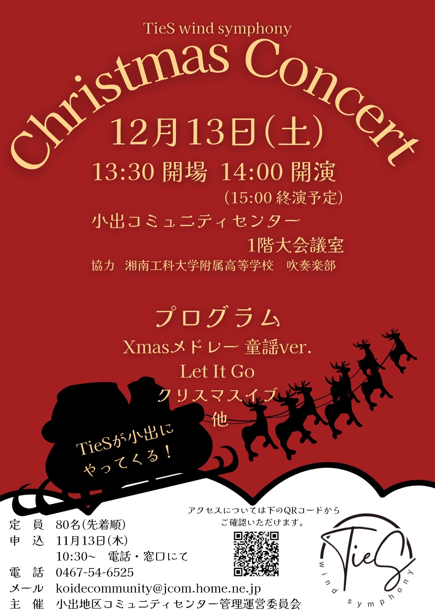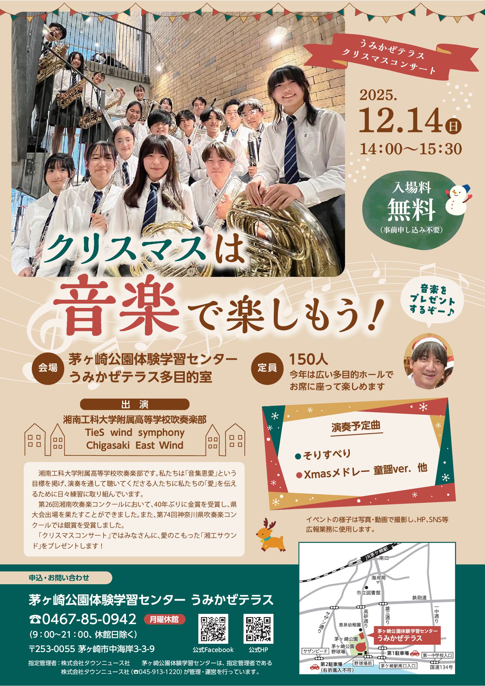 昨年に続き、茅ヶ崎にある「茅ヶ崎公園体験学習センター うみかぜテラス」にてクリスマスコンサートを行います。