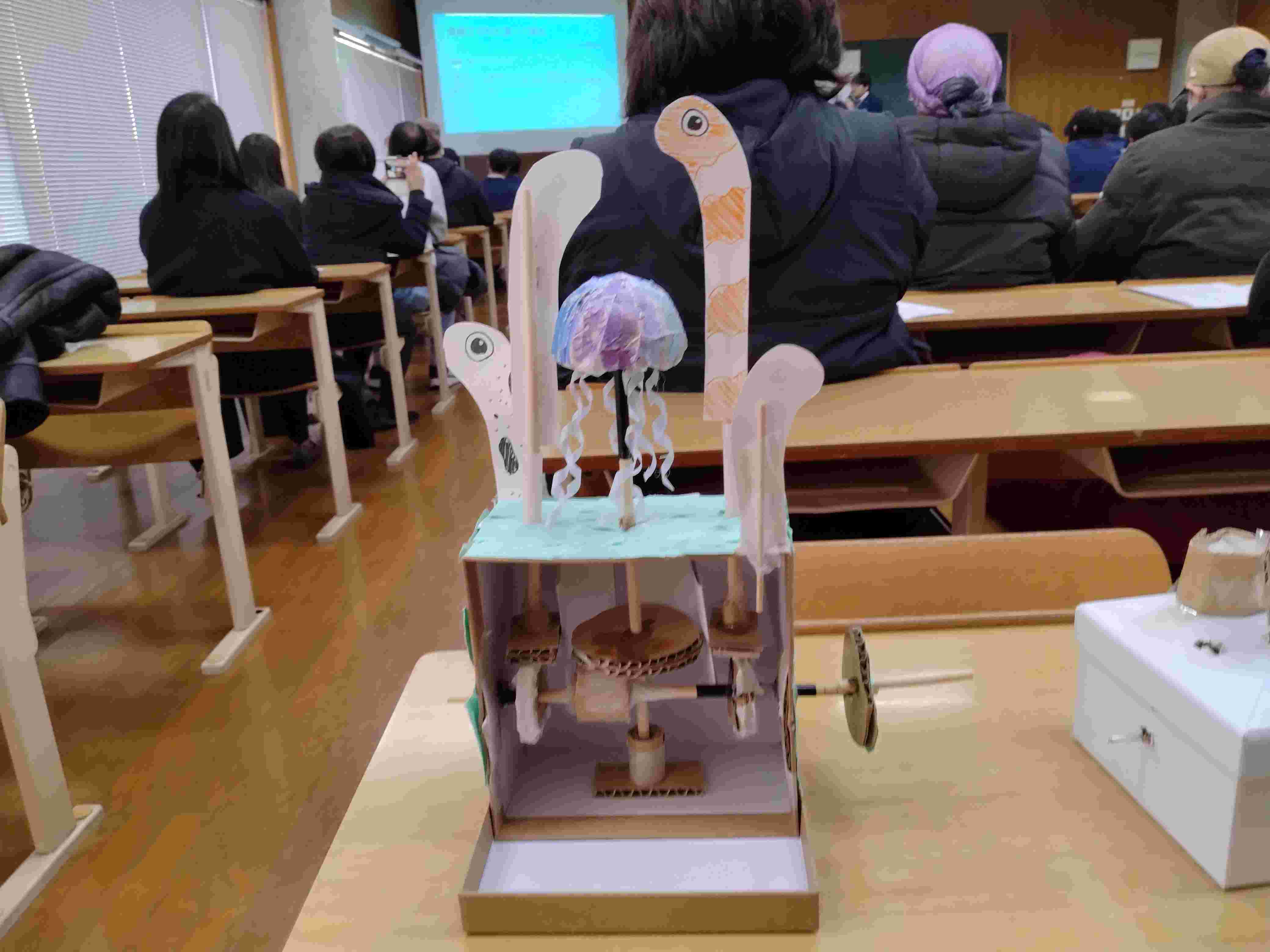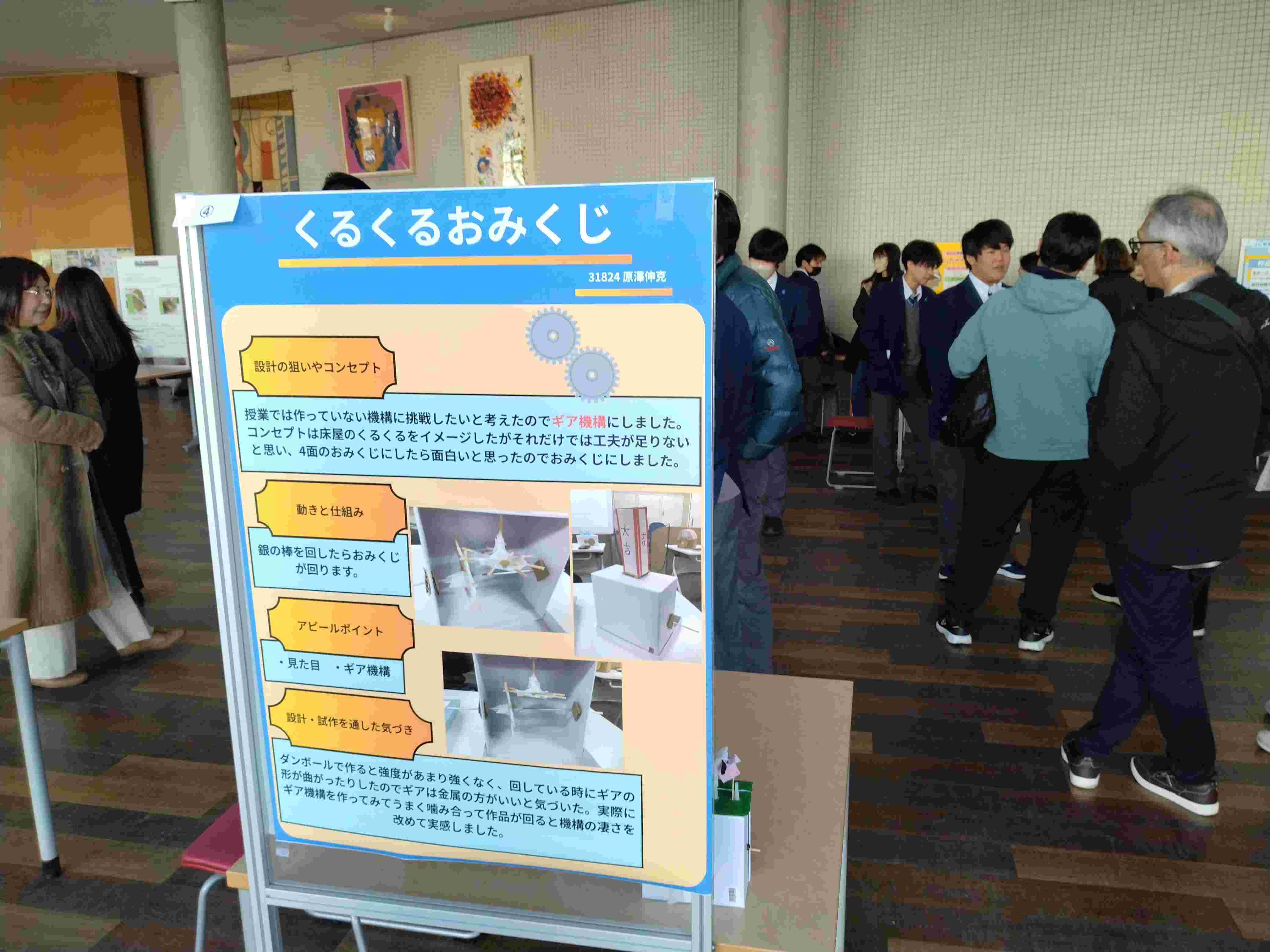 工学部では、人間環境学科、電気電子工学科、総合デザイン学科、機械工学科がそれぞれの特色を活かした発表を行いました。実験や体験を通して得た気づき、デザインに込めた発想力、電気電子分野での技術理解、そして機械工学科によるクランク機構を用いたカラクリ設計など、多彩なテーマが披露されました。特に機械工学科のショットガンプレゼンテーションでは、限られた時間の中で要点を端的に伝える力が求められ、生徒たちは緊張しながらも集中力を発揮していました。
