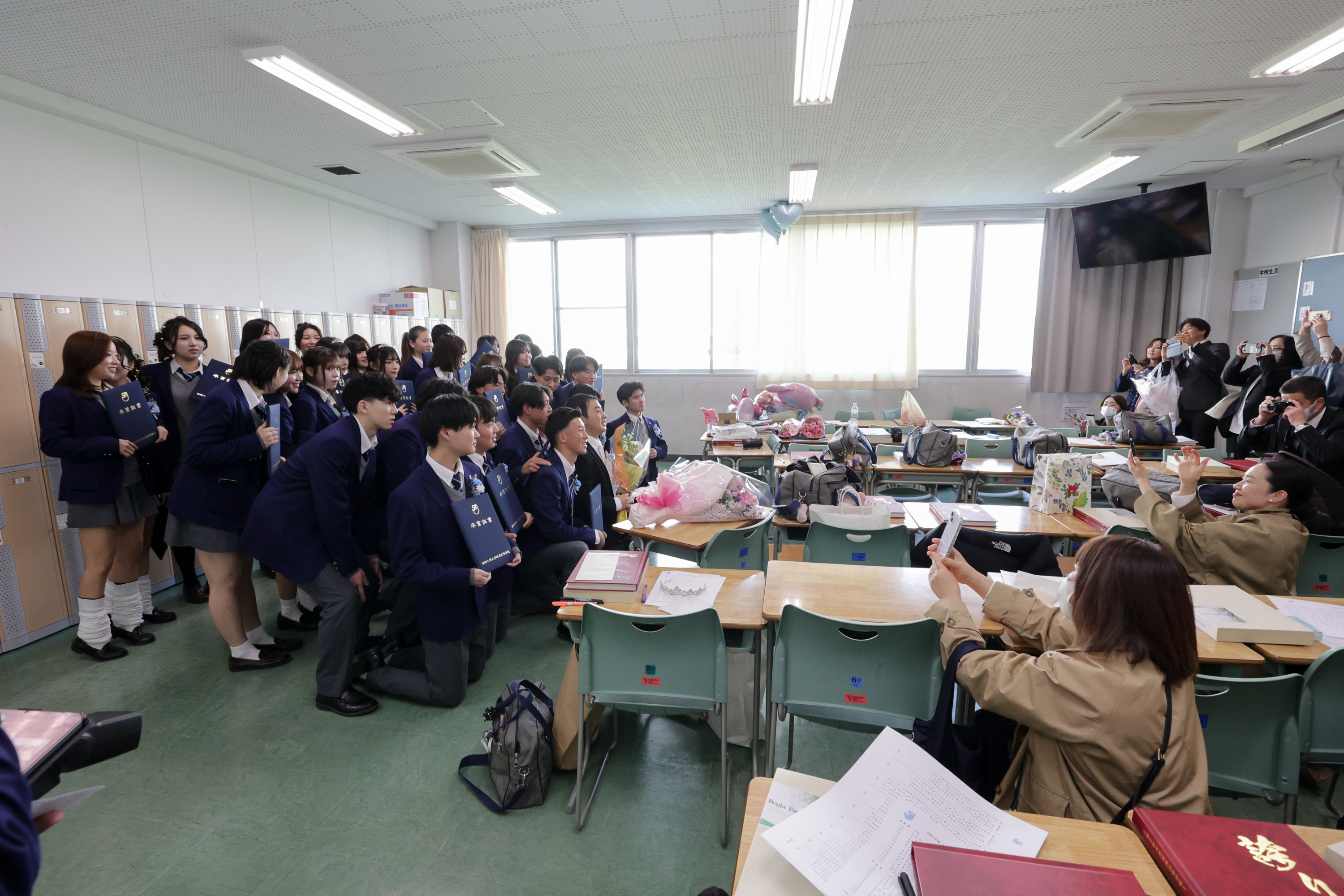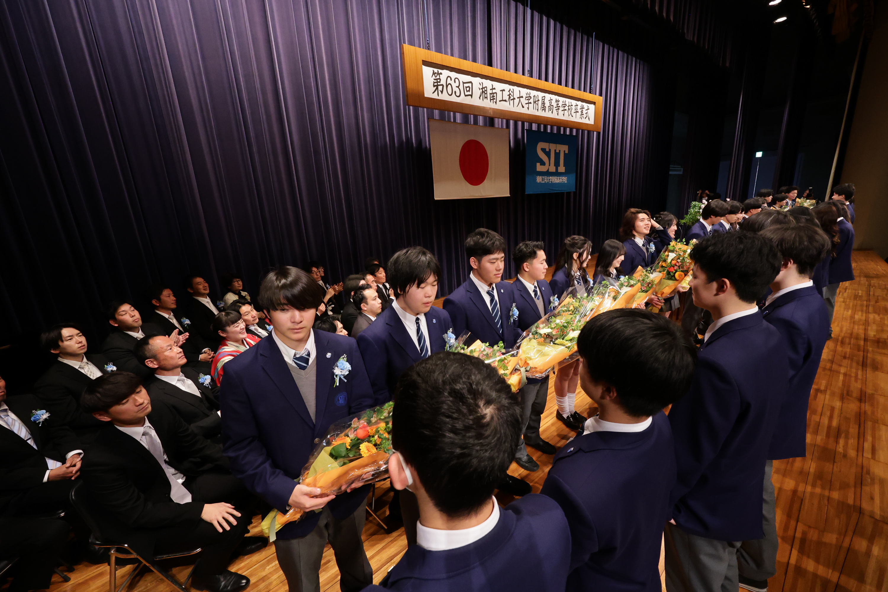 第二部は、3年間の思い出の詰まった教室で、担任より卒業生ひとり一人に卒業証書が手渡されました。教職員と卒業生の3年間の思い出を保護者と共にふり返り、湘工生として誇り高く巣立っていく卒業生を見送りました。